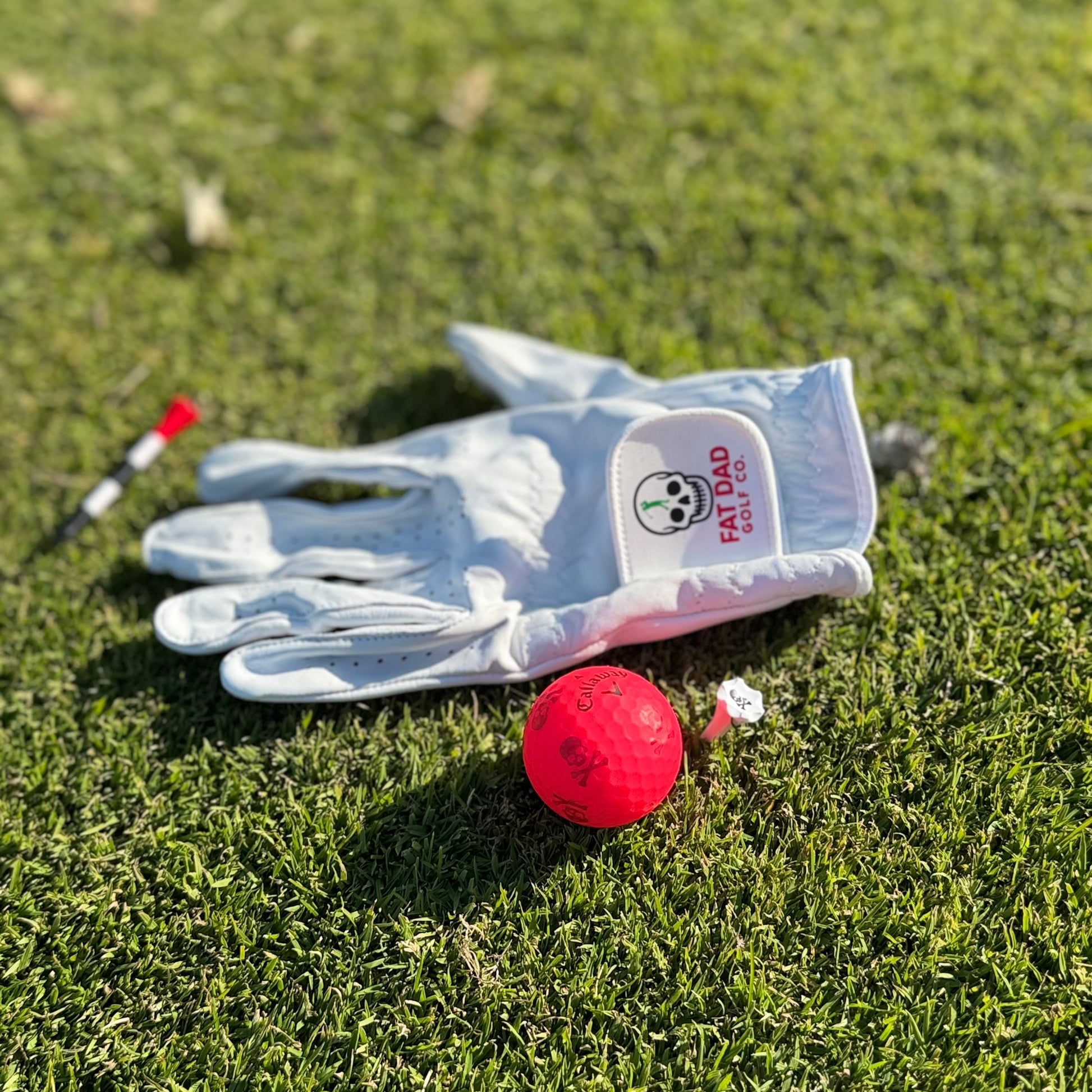 our signature glove in natural gray with white trim — effortless, neutral style with premium cabretta feel. classic fit and the "golf in mind" fdg skull ⚑ patch on the tab for just the right flex. men's sizes have the original white skull and the women's sizes have the dark inversion skull.